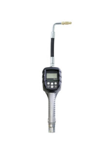 オイルリールに接続しモーターオイルを供給するデジタルメーターのオイルガン。